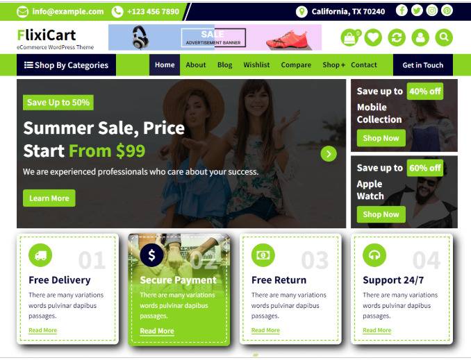 Theme Beispiele: Homepage, Shop und Blog . Download nur über die offiziellen Download Links der Rechteinhaber.